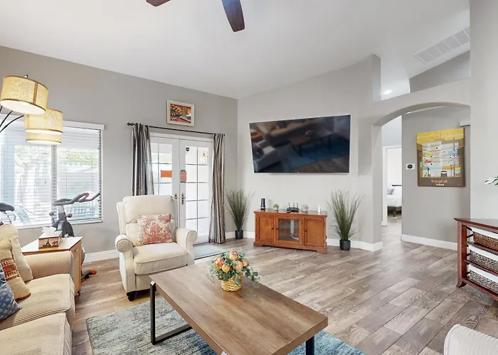 Die 2-Zimmer-Villa Southern Serenity Phoenix liegt rund 6 Kilometer vom Tempe Diablo Stadium entfernt und verfügt über eine Terrasse mit Blick auf die Berge.